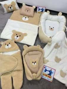شامل: لحاف، دو عدد بالشت پر شده، دو عدد استر بالشت، کاور تشک، گاردها- ست کامل تخت نوزاد: ۱,۵۰۰,۰۰۰ تومان